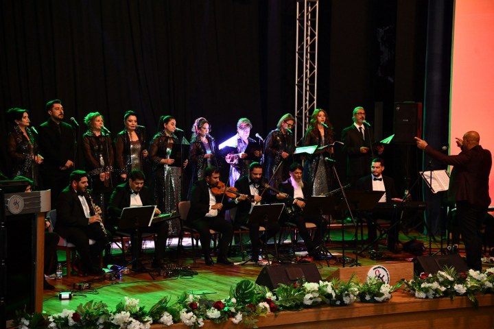 Osmaniye Belediyesi’nin ev sahipliğinde Osmaniye’nin düşman işgalinden kurtuluşunun 104. yıl dönümü etkinlikleri çerçevesinde Osmaniye Musiki Derneği Belediye Korosu tarafından ‘Kurtuluş’ konseri düzenlendi. Korkut Ata Üniversitesi 15 Temmuz Amfisi’nde Aziz Keskiner’in şefliğini üstlendiği konserde sahne alan koro ekibi, müzikseverleri ‘El Gibi’ türküsü ile karşıladı. Konserin ilerleyen saatlerinde solo ve koro halinde seslendirilen birbirinden güzel eserlerle keyifli anların yaşandığı gecede dinleyicilerde alkışlarıyla salona renk kattı. 7 Ocak ruhunun geleneksel ezgilerle sahneye taşındığı tarih ve musikinin buluştuğu gecede unutulmaz bir konser yaşatan Osmaniye Musiki Derneği Belediye Korosu, seslendirilen son eser ‘Türkiye’m’ türküsüyle coşkuyu zirveye taşırken topladığı alkış tufanıyla müzikseverlerden tam not aldı. Müzikseverlerin yoğun ilgi gösterdiği konser sonunda Milliyetçi Hareket Partisi İl Başkanı Yusuf Çomu ile Belediye Başkan Yardımcısı Muazzez Burçin Çalışkan koro şefi Aziz Mehmet Keskiner’e tüm koro üyeleri adına çiçek takdim etti.