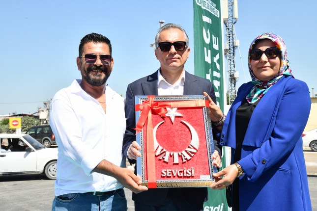 Konuşmaların ardından Yıldırım Beyazıt Mahalle Muhtarı Şaban Şal ve eşi Duygu Şal tarafından, Başkan Çenet’e “Vatan Sevgisi” yazılı, filografi tekniğiyle yapılan el emeği Türk Bayrağı hediye edildi. Yolun açılış kurdelesi kesildi, katılımcılar yeni yolda yürüyüş yaptı ve vatandaşlara hayırlı olsun dilekleri iletildi. Törenin ardından Başkan Çenet, yerli ve milli otomobil TOGG ile yeni asfalt yolda test sürüşü gerçekleştirdi.